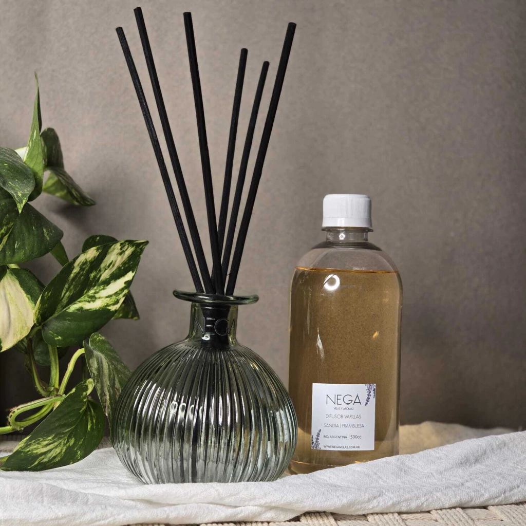 El Difusor Marruecos está diseñado con un envase de vidrio texturado y con color que aporta estilo y calidez a cualquier rincón de tu hogar. Sus varillas de alta calidad permiten una difusión constante y pareja del perfume, creando un ambiente acogedor y lleno de personalidad.