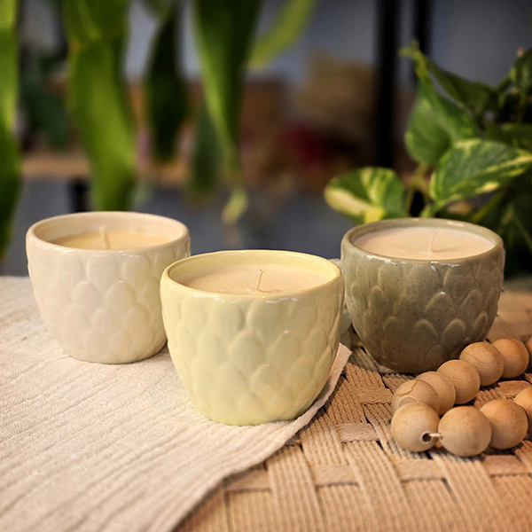 Una pieza única que combina la calidez de la cera de soja con la belleza artesanal de un cuenco de cerámica.
